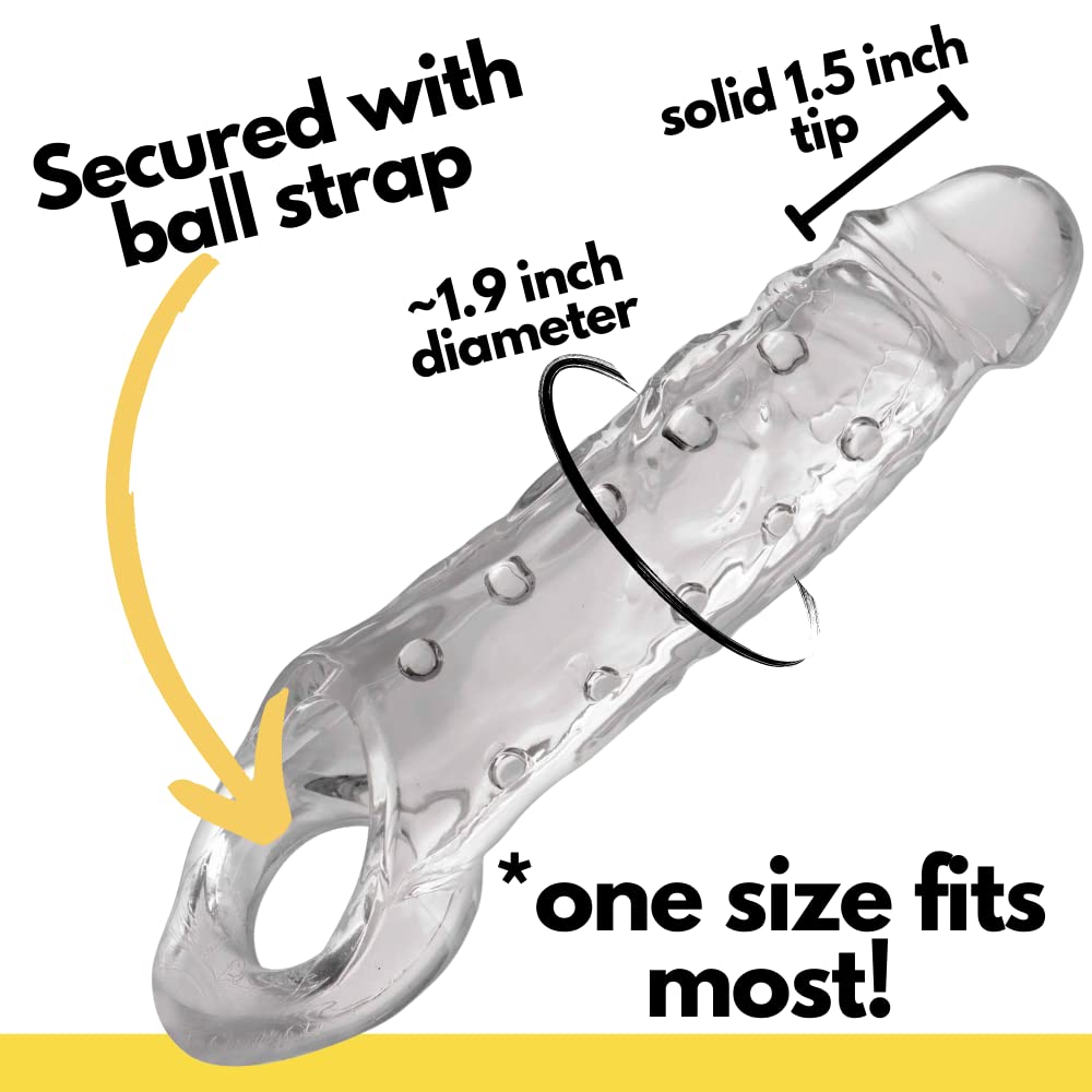 Size Matters Clearly Ample Penis Enhancer With Strechy Ball Strap For Men, Women, And Adult Couples, Reusable Extender Sleeve For Size Length And Girth, Soft, And Firm With Textured Nubs, 9.1 Inch