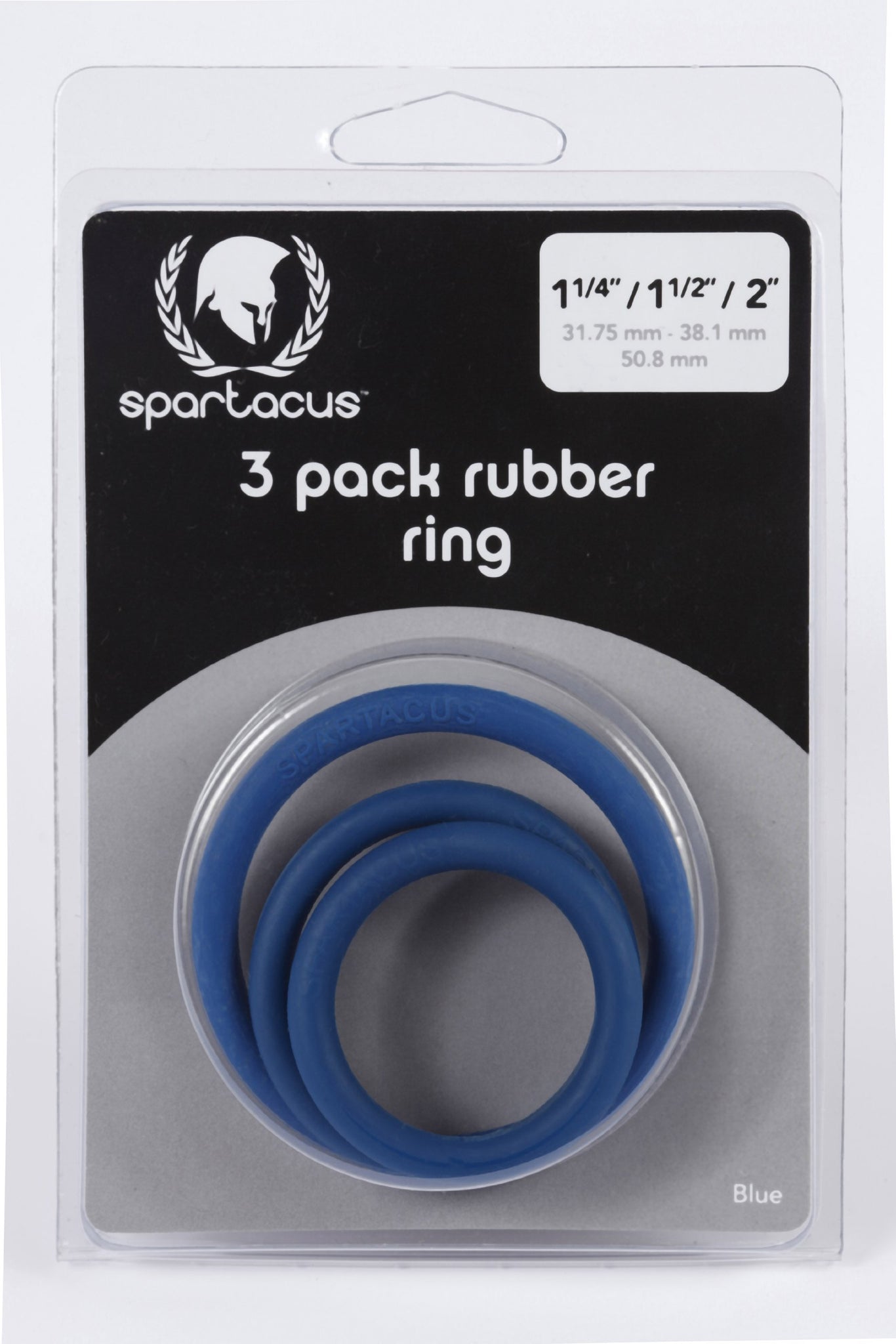 Spartacus Leathers Cock Gear Rubber Cock Rings. Soft Rubber Cock Rings Blue 3 Piece Set. Experiment with each of our rubber cock ring sizes in your choice of colors. Each set contains one 1.25 inches ring, one 1.5 inches ring and one 2 inches ring. What f