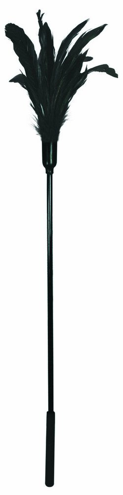Starburst Tickler Feather Black. A starburst of gorgeous feathers on a 16 inches black wand. Tickle and caress your partner. Available in many colors to match your lingerie or costume. Product features a card with sexy games and tips. Materials: chicken f