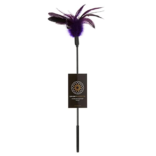 Starburst Tickler Feather Violet. A starburst of gorgeous feathers on a 16 inches purple wand. Tickle and caress your partner. Available in many colors to match your lingerie or costume. Product features a card with sexy games and tips. Materials: chicke