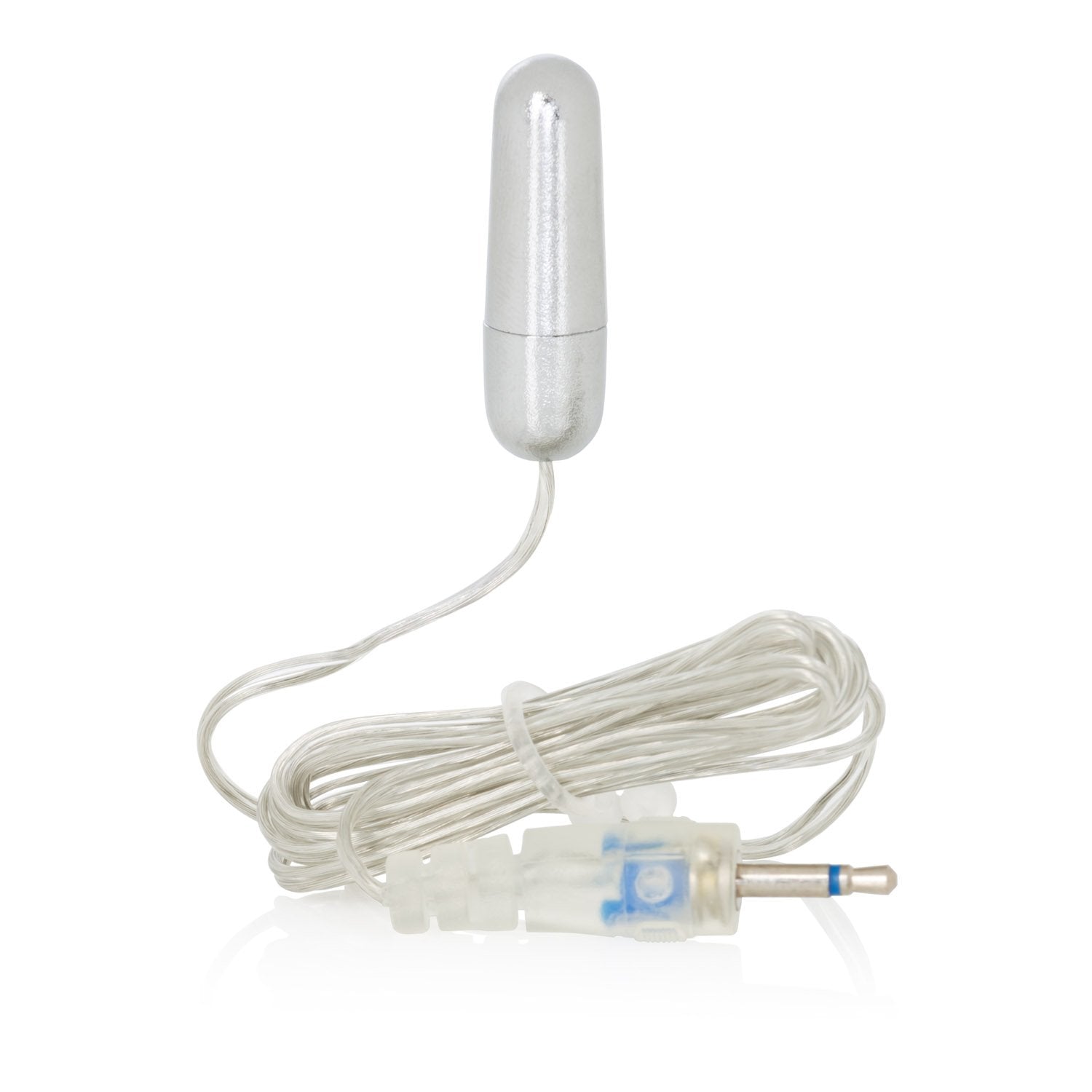 Sterling Collection Micro Silver Bullet comes with a cord plug-in jack. Self-heating. Bullet vibrator is made using phthalate free, non-toxic materials ABS plastic with silver plating. Please note this item does not come with a power supply or controller.