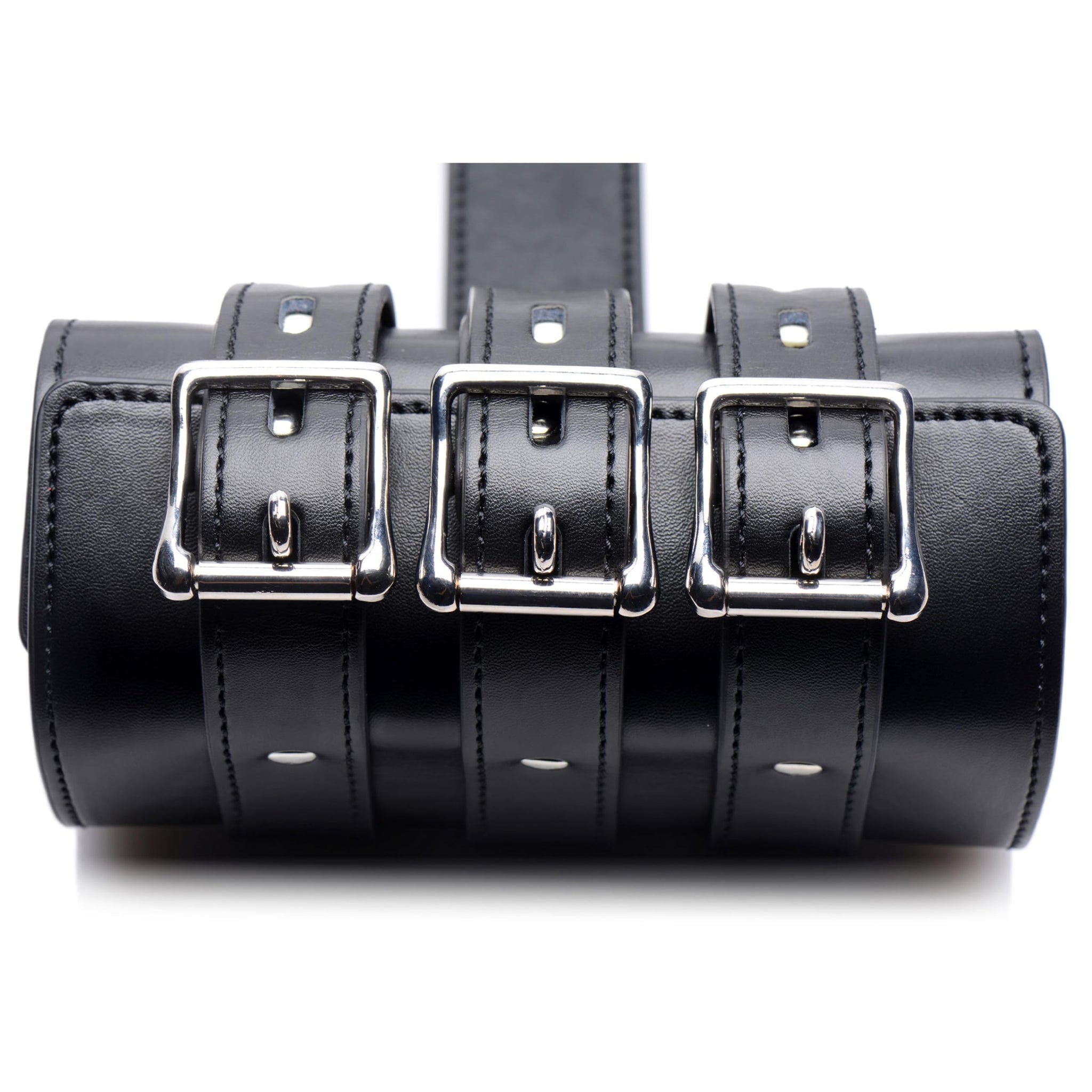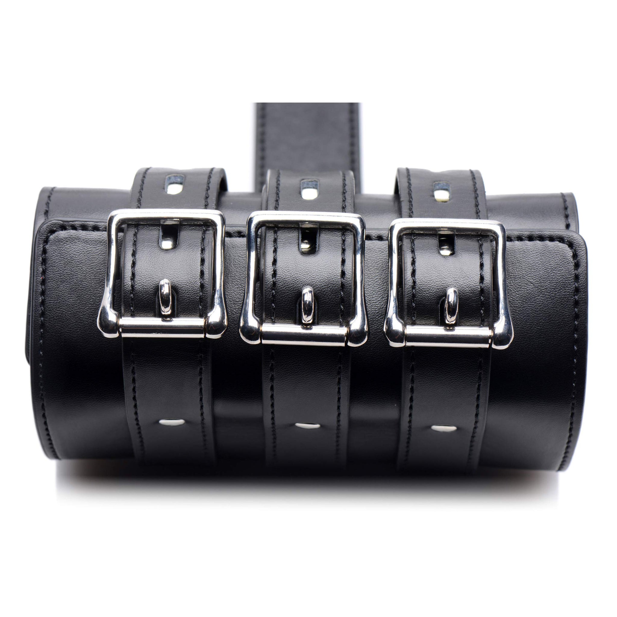 Q: What materials are used in the Strict Bondage Arm Binder?A: The Strict Bondage Arm Binder is made from comfortable and vegan-friendly PU leather and metal.