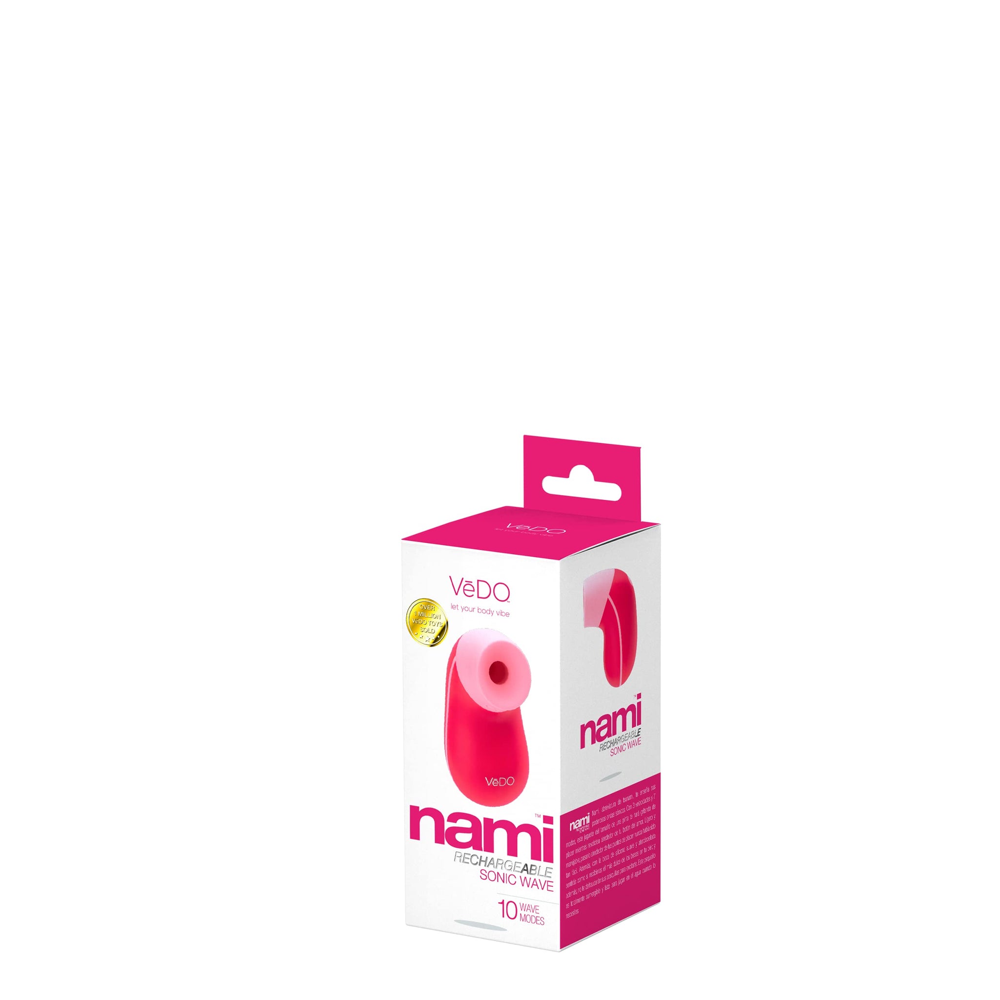 Vedo Nami Sonic Vibe Foxy Pink Rechargeable NAMI short for tsunami shows off its powerful sonic waves. With 3 speeds and 7 patterns, this pint size toy will leave you screaming with delight as it flutters against your love button. Light weight and handy,