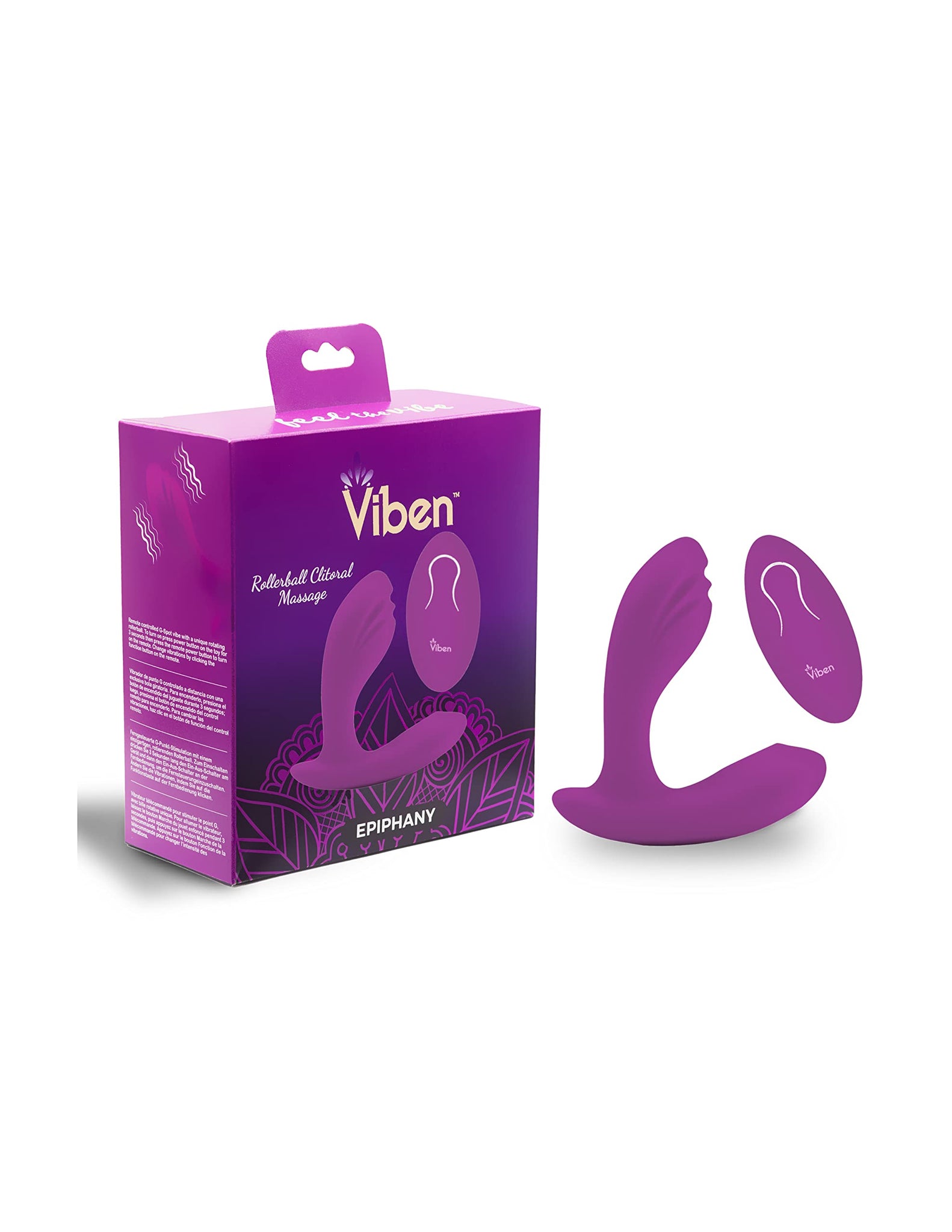 Viben Epiphany Roller Ball Clitoral Massager Berry. Inspire yourself with Epiphany, a remote controlled, dual motor, rocker, panty vibe that nestles in and against the body for mind blowing stimulation. Epiphany features a unique clitoral massaging roller